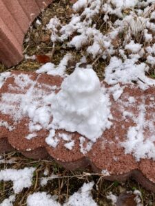 今朝は庭に雪が1cmはあったので、念願の雪だるま作りました。