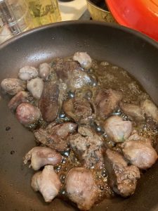 牛乳で臭み取って、甘辛くラム酒っぽく仕上げてます。
