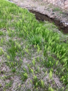 ほぼ90%がスギナになっていて、このスギナの生え方から見たら、今年は2週間前がツクシの最旬だったと思います。でも、100本以上取っても、余るだけで、勿体ないので、今年くらいの量で十分。