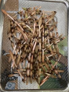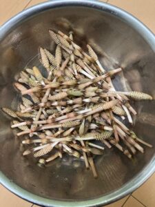 つくしは、ちょっと時期が遅かったかもしれませんが、15分くらいの狩りで、家族分くらいは取れました。芦屋に住み始めて14年くらい経っているのですが、毎年毎年、全く飽きること無く、取りに行く。