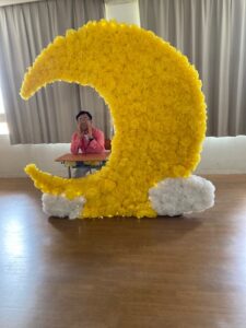 ポスターの前でパチリ(次男は何も言わないが、このポスターは賞を取ったそう、次男が力を発揮したわけではないと思うが、賞を取れる仲間に声をかけてもらっているというのが大事。人生においてはとても大事なことだ。
