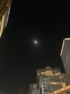 帰りは、最近使っている、秘密の通り道を使って帰りました。満月がきれいだった。
